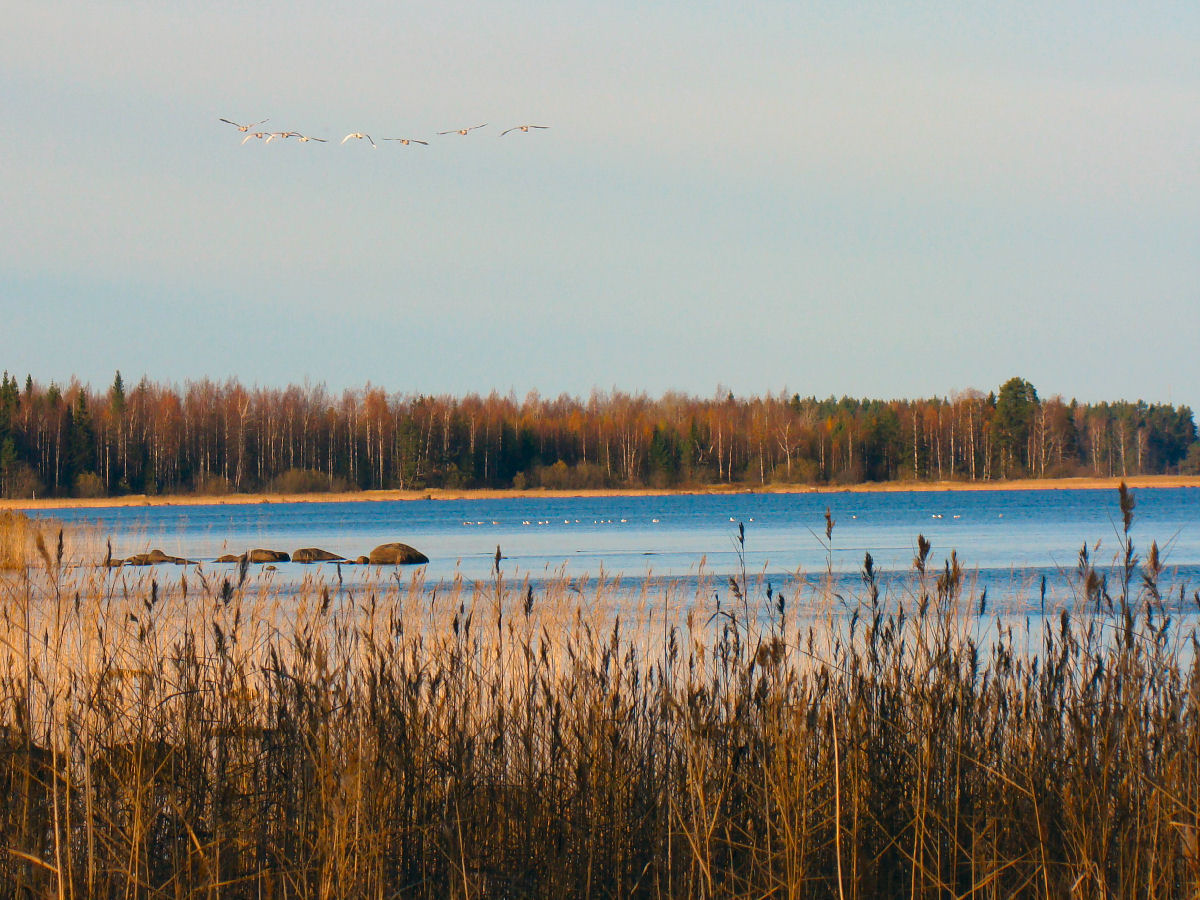 ![]() Kuva. Kurkiaura: "Lattialautojen naputtelun ohessa järveltä kuuluu ääniä, jotka eivät ole lokkien tai joutsenten. Työ on keskeytettävä ja temmattava valmiina ollut kamera mukaan ja juostava rantaan katsomaan. Sieltä ne tulivat, 50 kurkea, järven selän yli lentäen lounaaseen muodostaessaan juuri yläpuolellani auraansa uuteen uskoon ja häipyen sitten puiden latvojen taa." Nilakka. Keitele. Pohjois-Savo. Suomi. Keskiviikko 2010-09-22 klo 14:13. Pertti Manninen. Kuva. Joutsenjärvi: "Lattialautojen naputtelun jatkuttua jo hämärtyvään iltaan ja pikaisen käsien ja naaman pesun aikaan järveltä kuuluu kohina, kun joutsenet laskeutuvat aivan lähelle. Aluksi joutsenperhe ja sen jälkeen kolmekin paria hiukan kauemmaksi. "Nilakka. Keitele. Pohjois-Savo. Suomi. Keskiviikko 2010-09-22 klo 18:23. Pertti Manninen. Kuvat tänään: Päivällä: Kurkiaura ja Kurkiaura muodostuu. Illalla: Joutsenperhe ja Joutsenjärvi. |
